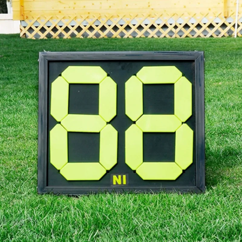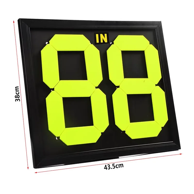 Die zweistellige Fußball-Auswechseltafel verfügt über helle Ziffern, sodass sichergestellt ist, dass die Nummern für Spieler, Zuschauer und Schiedsrichter gut sichtbar sind, egal ob in der sengenden Sonne oder im Nachtlicht. Die zweistellige Anzeige zeigt genau die Anzahl der Spieler an, die das Spielfeld betreten und verlassen. Dies kann Auswechslungen klar und leicht verständlich machen und Verwirrung und Streitigkeiten vermeiden.